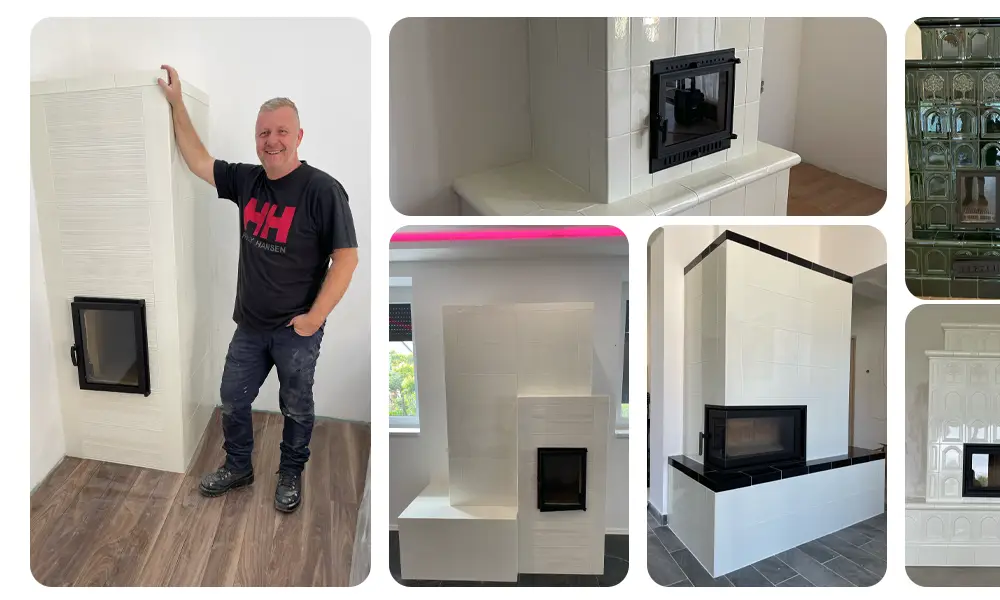 - Tűztér szigetelése és burkolása, héjazott kialakítása: A biztonság és hőtárolás érdekében.